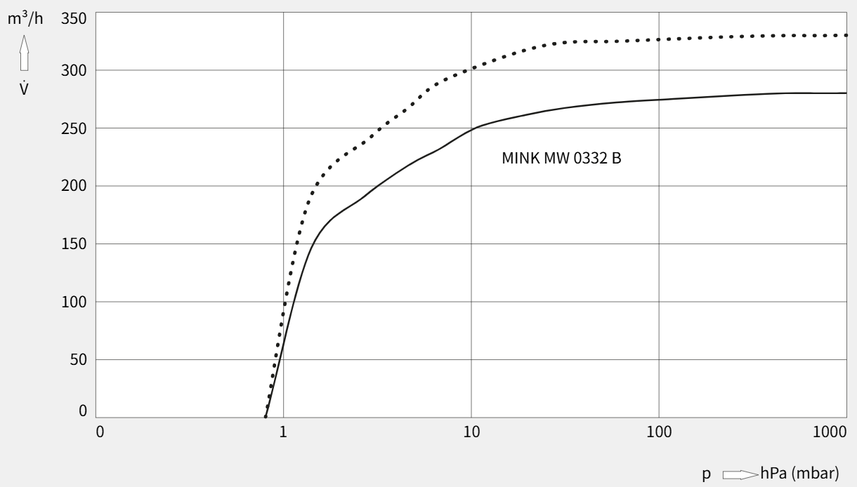 极限压力 < 0.8 hPa(mbar),在真空压力降至 10 hPa(mbar)时仍保持恒定的高抽气速度