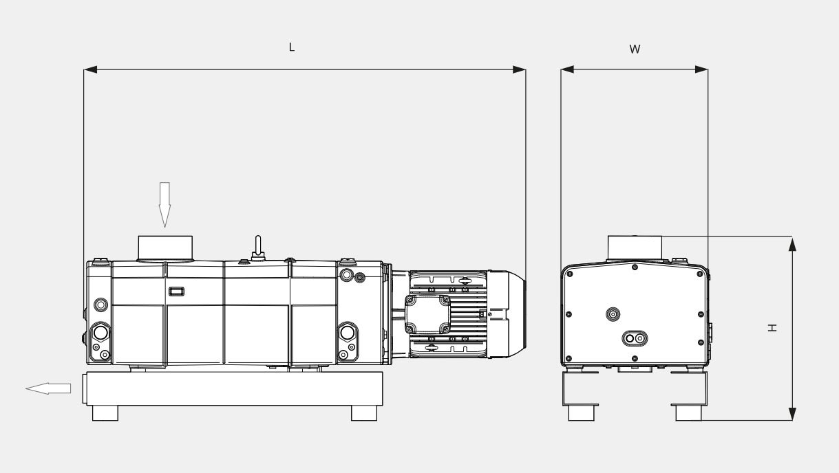 先进的螺杆设计,钟形悬臂结构,非常适用于热处理、涂装、真空包装、真空干燥和脱气应用