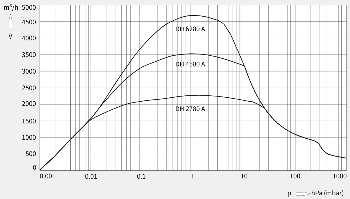 | 1 hPa (mbar) 时的抽速 | 2250 m³/h | 3512 m³/h | 4652 m³/h |