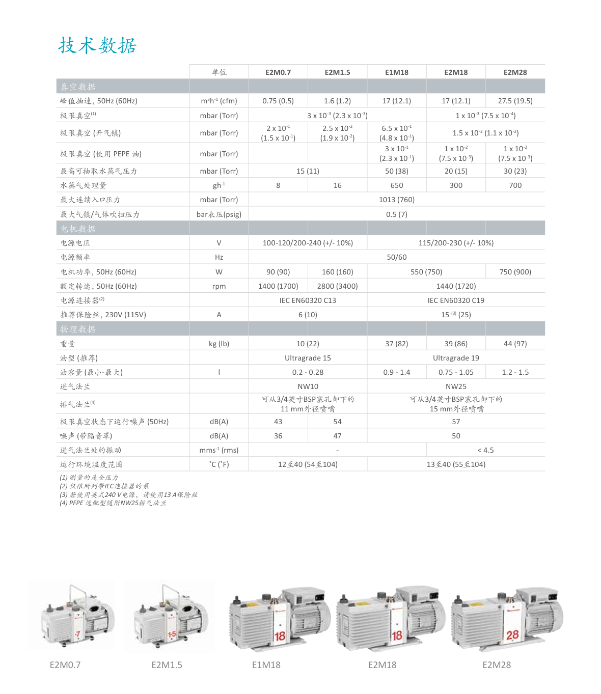 EM 油封旋片式真空泵E2M0.7、E2M1.5 和 E2M2.5