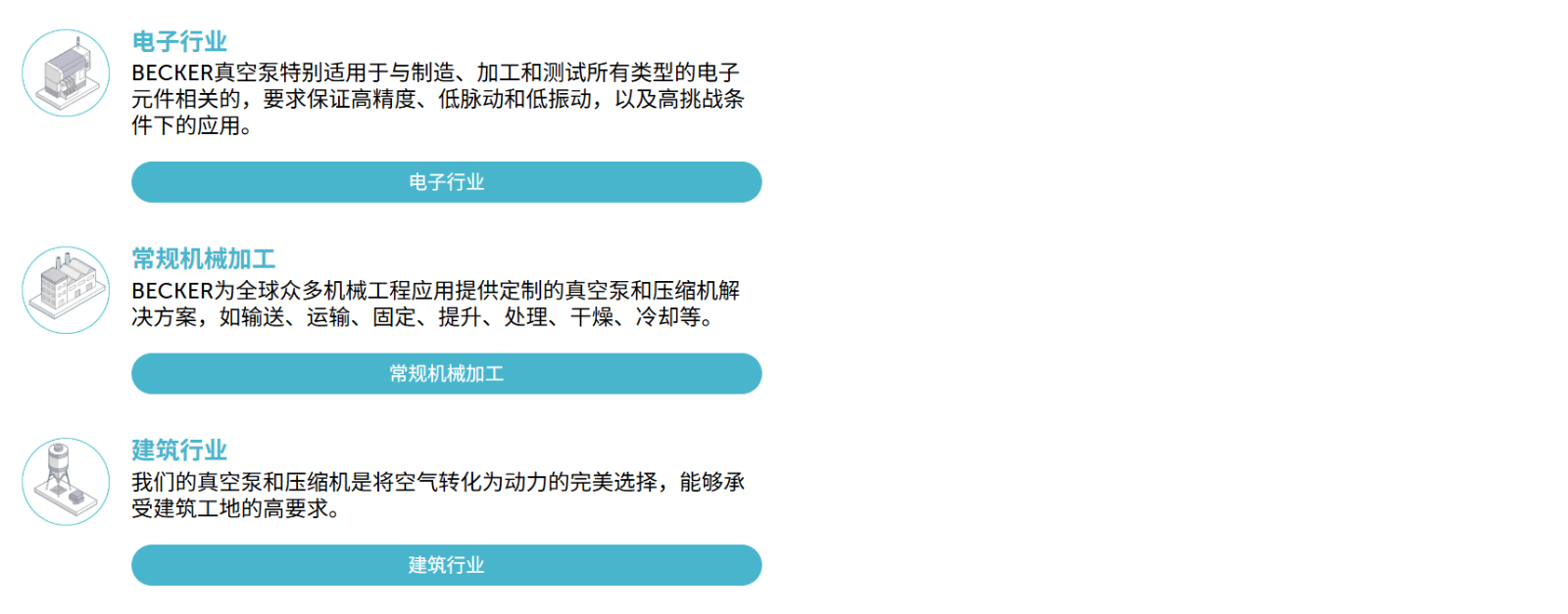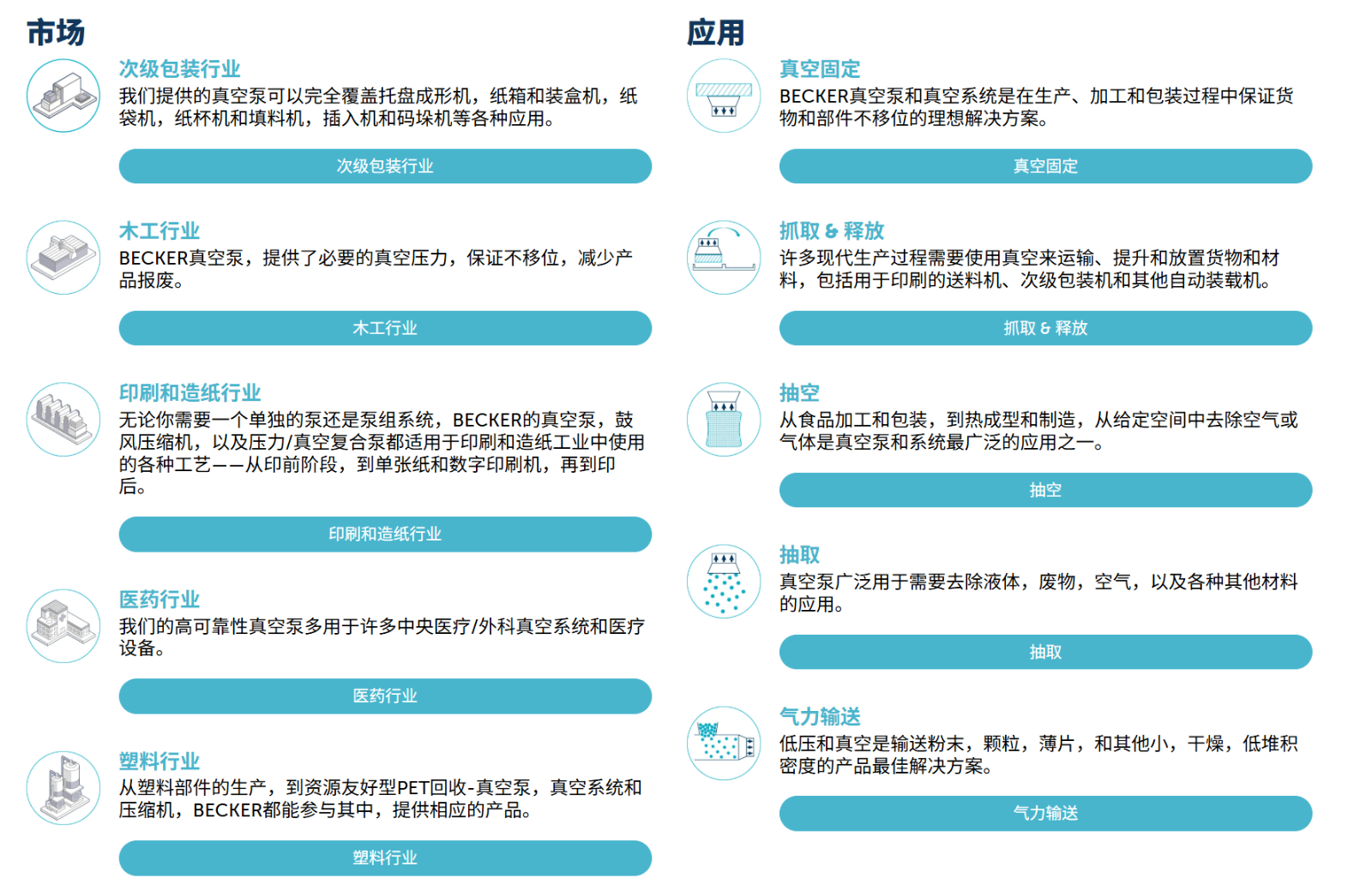 BECKER KVT 系列真空泵是中真空,干式旋片容积泵,设计和用于任何真空水平到绝对压力100mbar条件下连续工作。KVT 系列无油旋片泵采用自润滑,石墨复合叶片,为BECKER独家设计。无需更换机油,只需极少的维护。