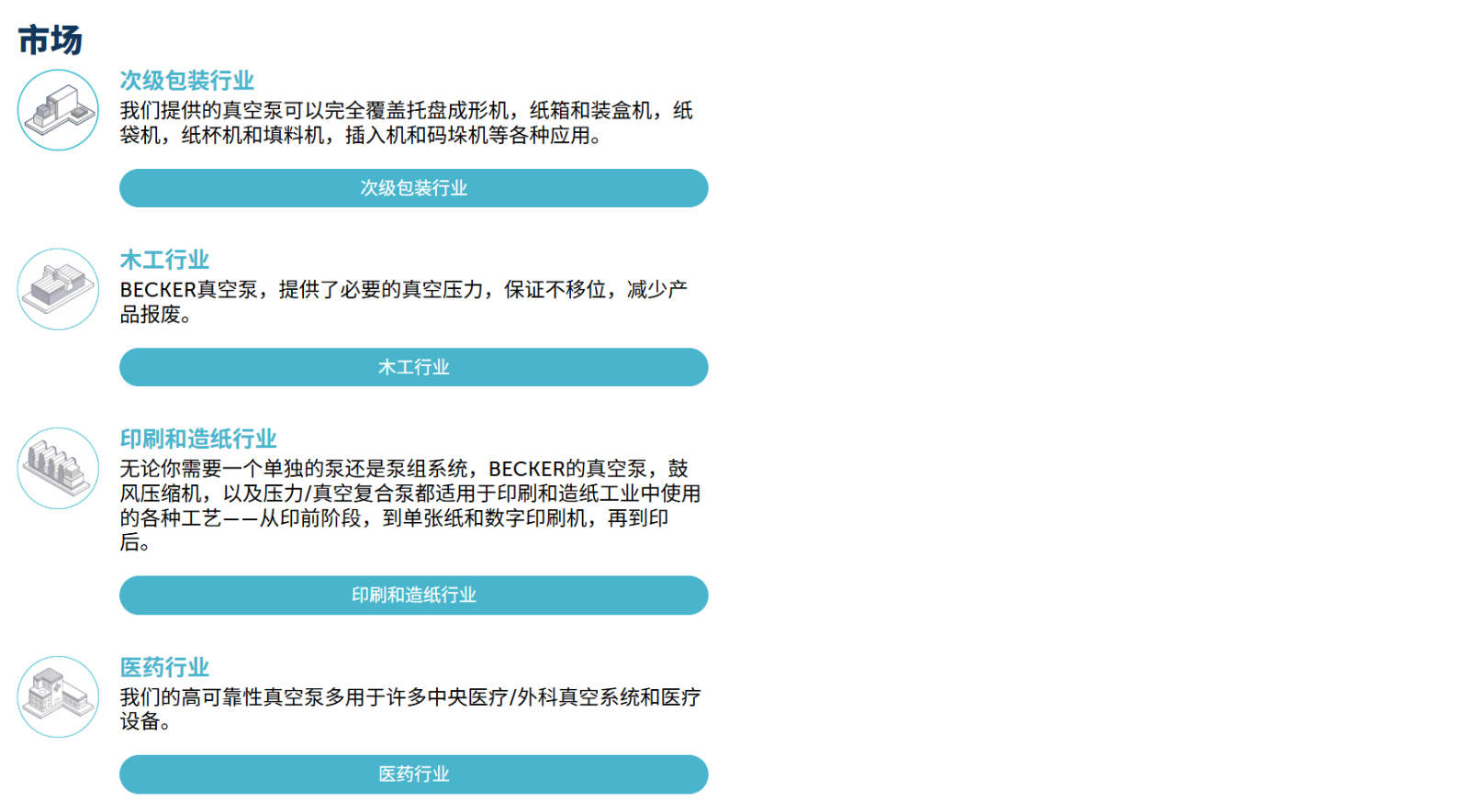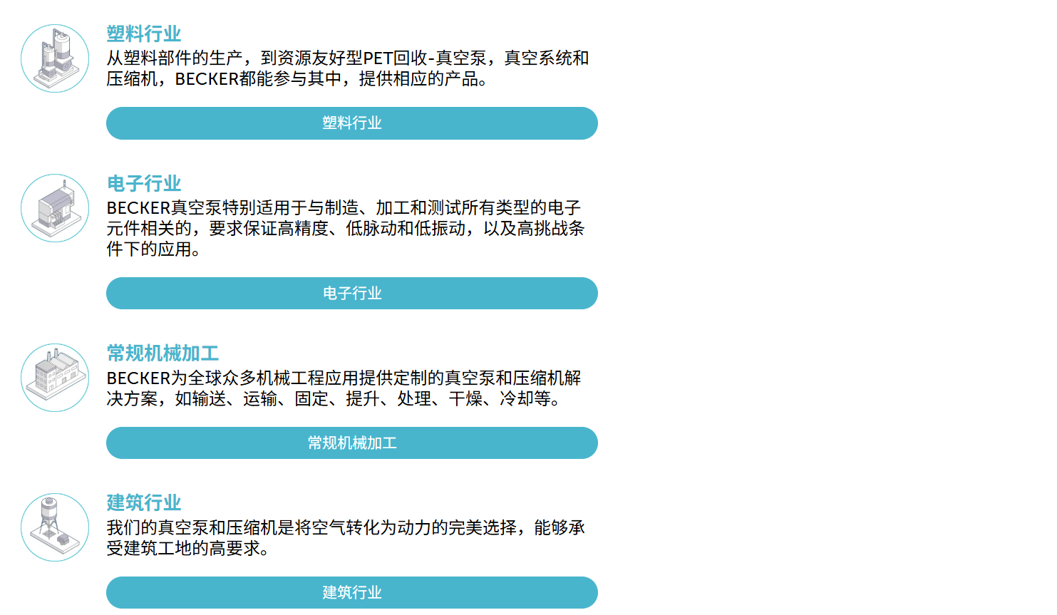 BECKER KVX 系列真空泵是中真空,干式旋片容积泵,设计和用于任何真空水平到绝对压力10kPa (100mbar)条件下的连续工作。KVX系列无油旋片泵采用自润滑,石墨复合叶片,独家设计可持续20,000小时。X系列泵寿命的延长也延长了维护保养间隔,减少维护时间,是经济适用的真空泵系列。