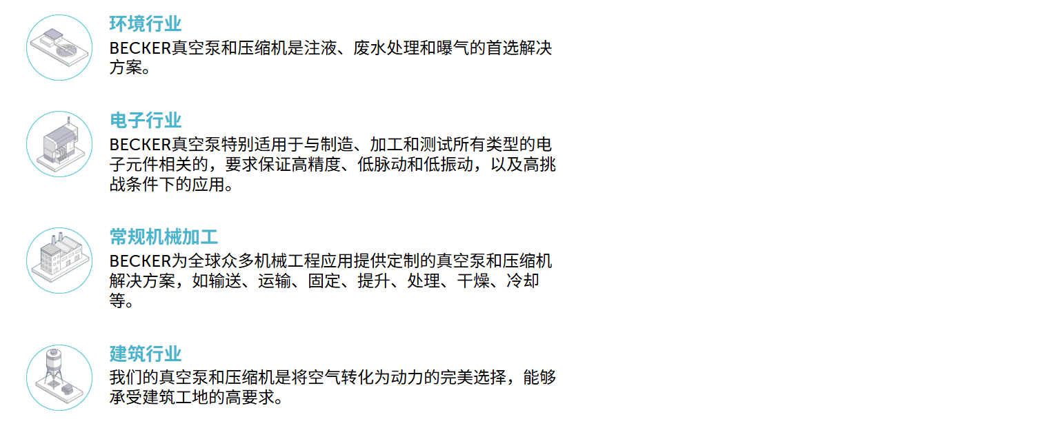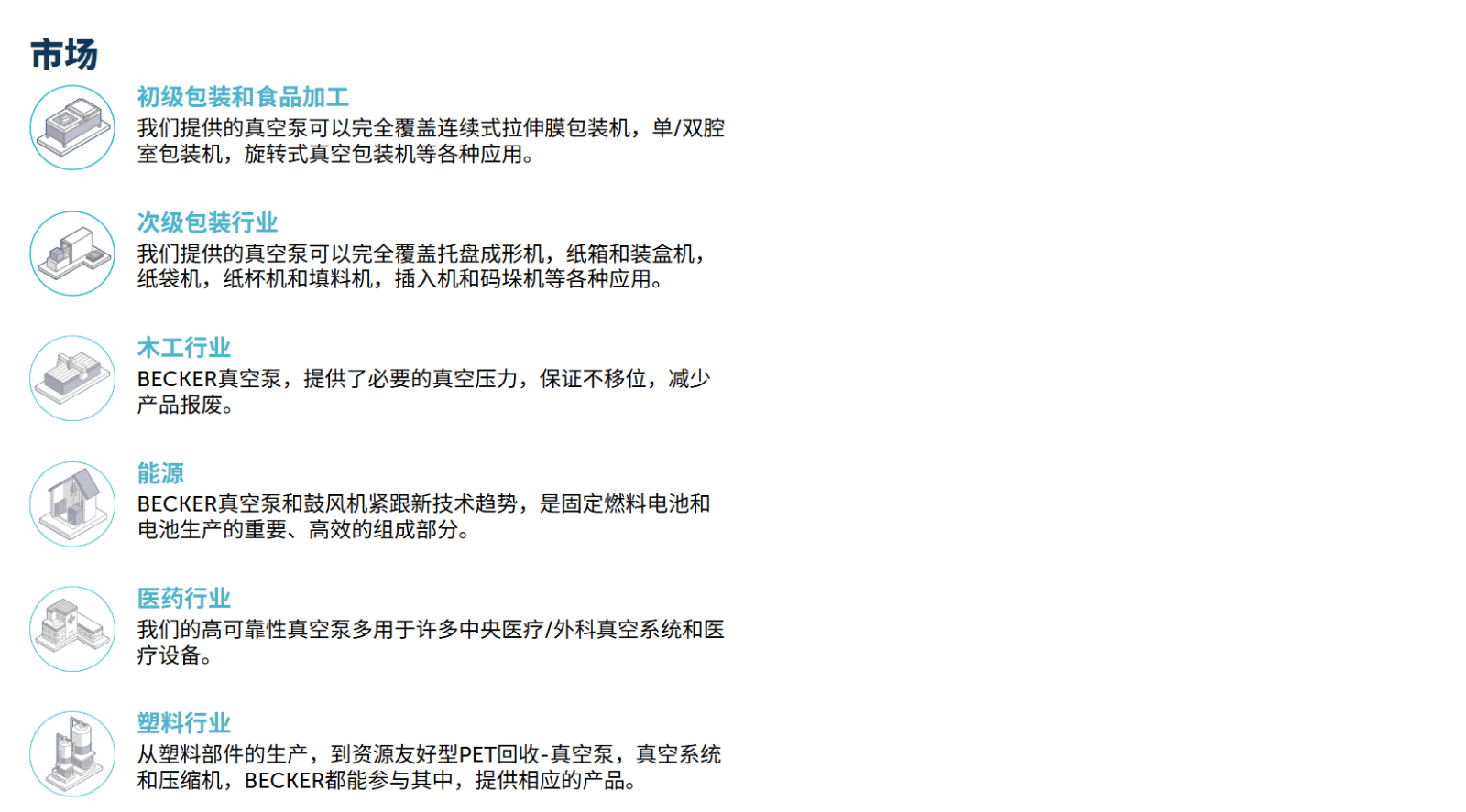 BECKER真空泵和真空系统是在生产、加工和包装过程中保证货物和部件不移位的理想解决方案。
