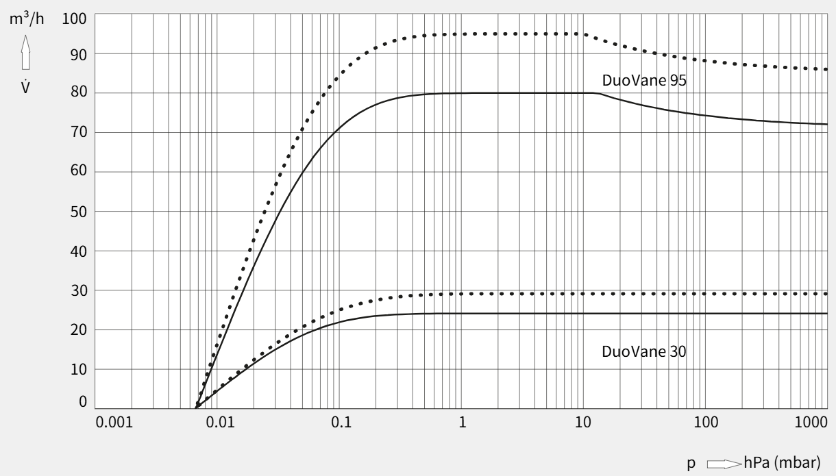 极限压力(气镇阀开启)2 · 10⁻² hPa(mbar)2 · 10⁻² hPa(mbar)
