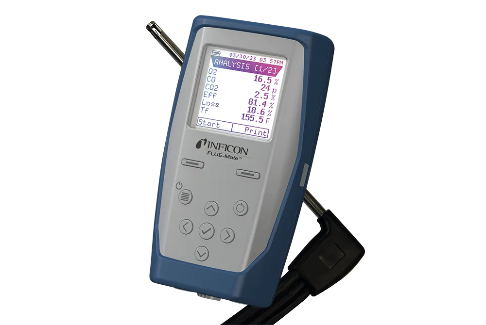 FLUE-Mate 是一款多功能燃烧分析仪,旨在提高燃烧效率和安全性。除燃烧分析外,该工具还配备了集成式压力计、温度计、一氧化碳测试、热交换器裂纹测试,并提供通风分析。FLUE-Mate 具有直观的模式选择和导航功能、15 种可编程燃料选择以及可现场更换的传感器、探头和水阱,可最大限度地减少停机时间。
