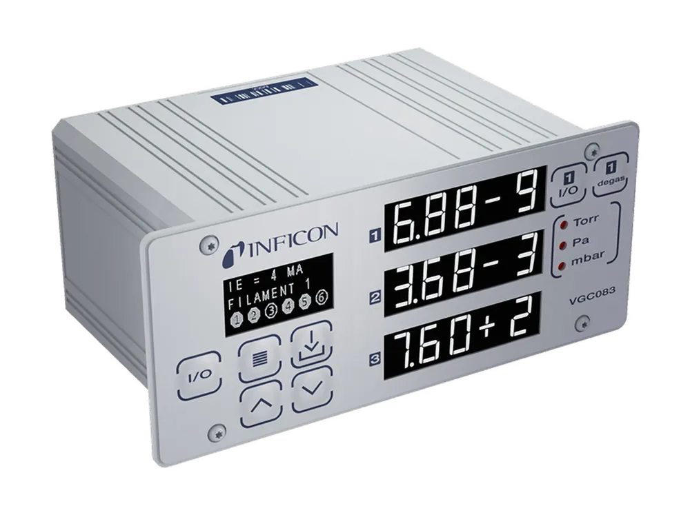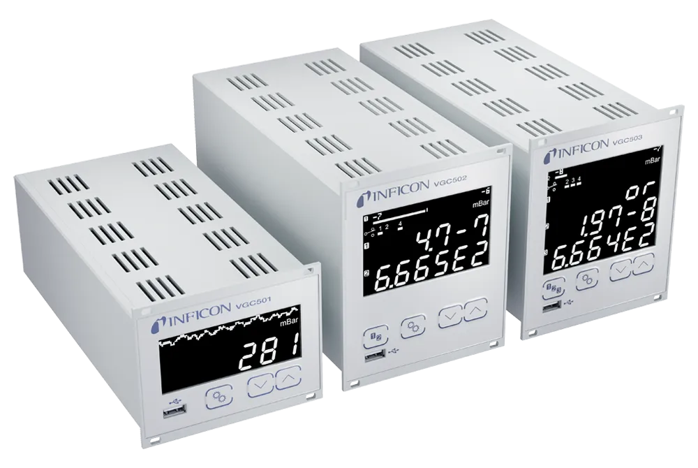 新 VGC50x 系列主动真空计控制器可与各种 INFICON 主动真空计兼容,能够监测 10⁻¹⁰ 至 1500 mbar(10⁻¹⁰ 至 1125 Torr)的完整压力范围和设定点状态并记录相关数据。