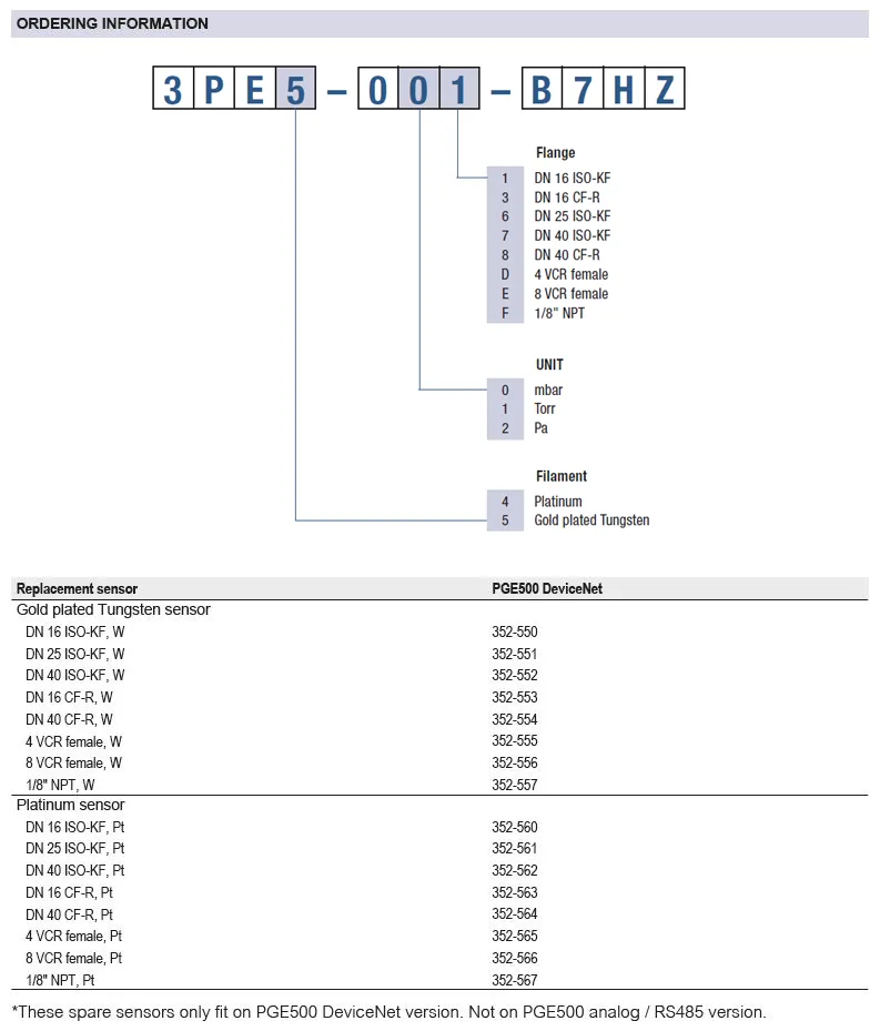INFICON Pirani Gauge Enhanced (PGE) DeviceNet 版本配备了市场上最新的数字对流增强型 Pirani 技术。由于对流的物理特性,这种类型的皮拉尼在 100 至 1000 毫巴的测量范围内具有更高的精度。坚固的仪表和传感器设计与许多工厂内置的功能相结合,如明亮、清晰的OLED显示屏与集成键盘、可选择的计量单位和2个可编程的设定点,使PGE500 DeviceNet版本成为高价值/低拥有成本的选择。所有这些特点使该真空计有资格用于需要从低真空到高真空范围的经济型真空测量的许多应用。PGE500 DeviceNet版本是MKS / Granville-Phillips® Mini-Convectron®(即所谓的GP275模块)的DeviceNet版本的直接插入式兼容替代品。INFICON PGE500备用传感器头也适合替换Granville-Phillips®传感器头。