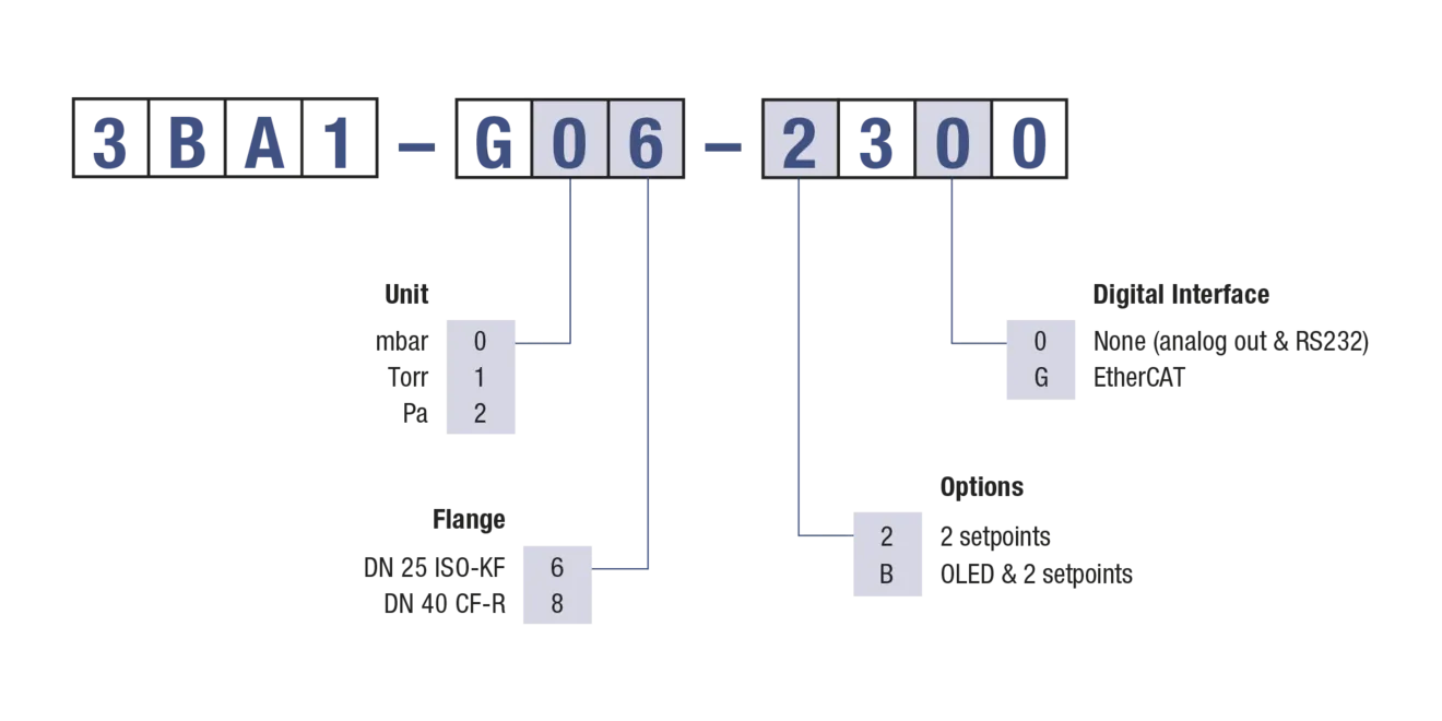 对于需要独立热离子规技术的应用,Trigon® 系列中包含了采用单一技术的 Bayard-Alpert 热电离规 BAG552。