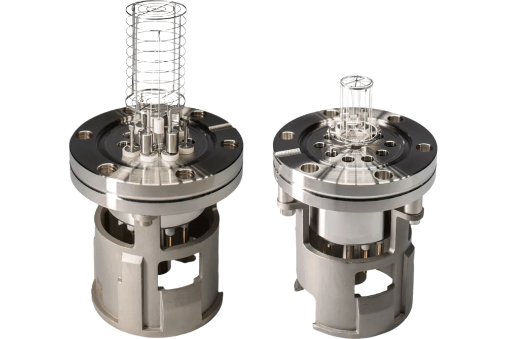 通过调节阴极发射电流,IE414 的测量范围从 10-2毫巴到10 -11毫巴,跨度超过 9 个分度。由于采用了萃取器原理,IE514 可以达到 2×10-12mbar 的测量下限,这要归功于其本身减少了 X 射线和离子解吸效应。IE414 和 IE514 真空计头专为低放气真空系统设计,可在极高温度(400 °C)下烘烤。耐高温真空计头电缆套件也可用于超过 200 °C(传感器法兰处为 250 °C)的高温烘烤。