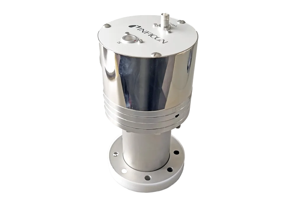 离子基准真空计 IRG080 是专为在真空系统中精确测量总压而开发的首款真空传感器。IRG080 基于创新的电离真空计概念(热阴极发射电子以直线路径进入法拉第杯),适用于 10-8 mbar 至 10-4 mbar 范围内的参考标准。